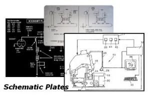 Schematic plates, or schematic diagrams, are often utilized when there is a need to inform others of the circuitry or proper usage of certain equipment. Schematics can be found almost anywhere and are used for a wide variety of reasons. Some of these reasons include the proper operation of machinery, for repair purposes and for the correct wiring of specific components.