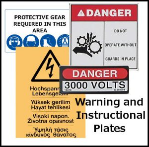 There is another header that is sometimes used on warning and instructional plates, and that is the SAFETY FIRST header, which is often used on plates that remind people to take heed of the safety procedures they need to follow in the workplace. Some plates may not carry such headers on them, however this does not diminish their importance in any way. These are placed on certain equipment, areas, and machinery for a specific reason, and that is for safety and proper operation, which should always be followed by people who read these plates.