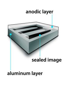 Photosensitive plates are usually made with anodized aluminum, with the anodic layer protecting the print that is imbedded in the aluminum plate. These plates are manufactured two ways, with one ideal for use only when black images are needed and the other method used when colors are required by a client for their plates. The process that creates black images is the one chosen by those who require highly durable plates to be made.