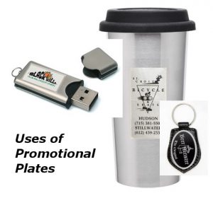 In creating promotional plates, you need to consider what these are to be used for. Some companies have these plates made ahead of time and in bulk in order to facilitate the quick and easy creation of promotional products. What they do is they attach these tags to items that they give away to potential customers during promotional drives, product launches, trade shows, and conventions. The availability of these tags make it easy to make promotional giveaways on-the-fly. All you need to do is to find a suitable generic item for the particular event you are planning to attend or hold for your marketing needs, attach these tags to the items, and you have instant promotional products.